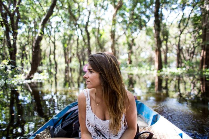 Sian enjoying a magestic ride on a gondola through the Kompong Phluk floating village.